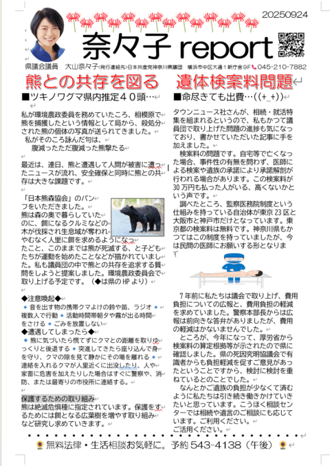 奈々子リポートを基本毎週発行していますが、地元で配布するチラシと、県議団のFacebookだけに発信していました。間抜けでした。ブログもありますからこちらにもご紹介するようにします。よろしくお願いいたします。