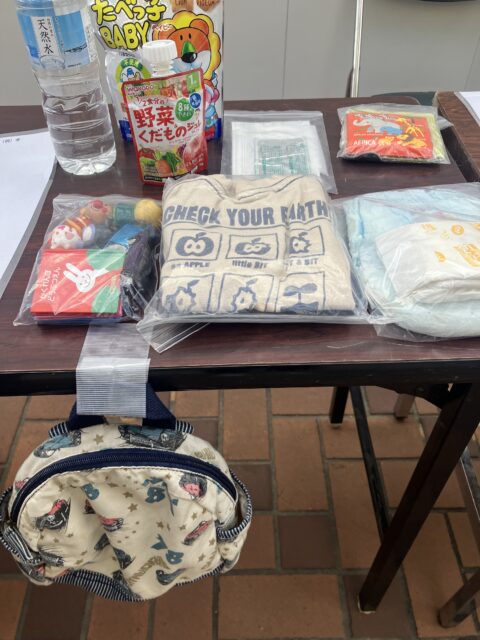 今年はアイラップとホットケーキミックスを使ってお湯だけで作れるケーキやお米と水を包んで浸水させて1時間ゆでて作れるご飯など非常食をいただきました。