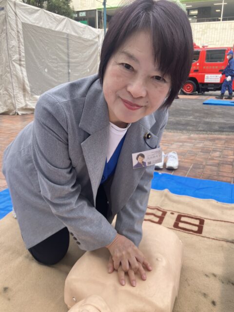 心臓マッサージも毎年体験せねばと体験しました。呼吸がなかったらやって下さいと言われましたが、通常の呼吸でなかったら行うのだと再確認。