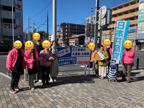 3日は地下鉄の駅を順番に宣伝して歩きました。白井市議と私が回って各駅で地域の皆さんが参加し新年恒例の宣伝となっています。人通りが少ない中ではまずまずの反応でした。「頑張ってよ」というお声も。のべ40人の参加でした。日吉本町駅、高田駅、新羽駅、新横浜駅近くの交差点と回りました。