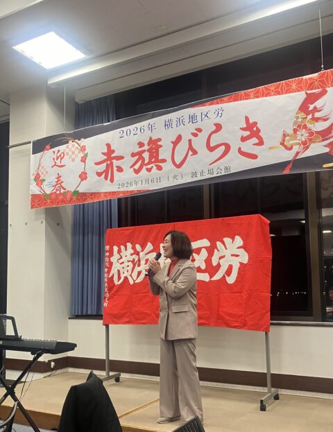 6日。横浜地区労働協議会は様々な労働組合の集合体です。たった1人、2人の組合から加入者がとても多い組合、旗開きでは各ユニオンの権利回復の訴訟や宣伝活動など報告されて、頼もしい思いで聞かせていただきました。また、最近労働組合に関する潮目が変わってきたという例が紹介され、労働組合に入りたい、作りたいというご相談が増えているそうです。労働者一人では力が弱くても、仲間とともに学びながら使用者側に迫ることで勝ち取れる権利がある、労働組合の組織率が下がっていると言われる中で、その意義が知られ始めているという話は心強いものでした。私は、行政の問題を告発される相談者が共産党県議を頼ってきてくださったこと、一人でも入れるユニオンにつないで課題を解決できたことなどご報告しました。来年は仲間が増えたよと報告できるようにしたいという力強い意見表明もありました。熱意ある発言が相次ぎ、いろいろな集会で素敵な歌声を披露してくれる神奈川合唱団の時間が短かったのが残念でした。