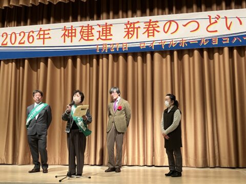 神奈川県で建設業に携わる建設職人を中心につくっている組合の新春のつどい。27日、はたの候補や井坂県議と参加しました。ここでは以前、お困りごとを聞いて私が県に改善を求めた件で、その後改善されつつあるという報告をいただき、うれしかったです。